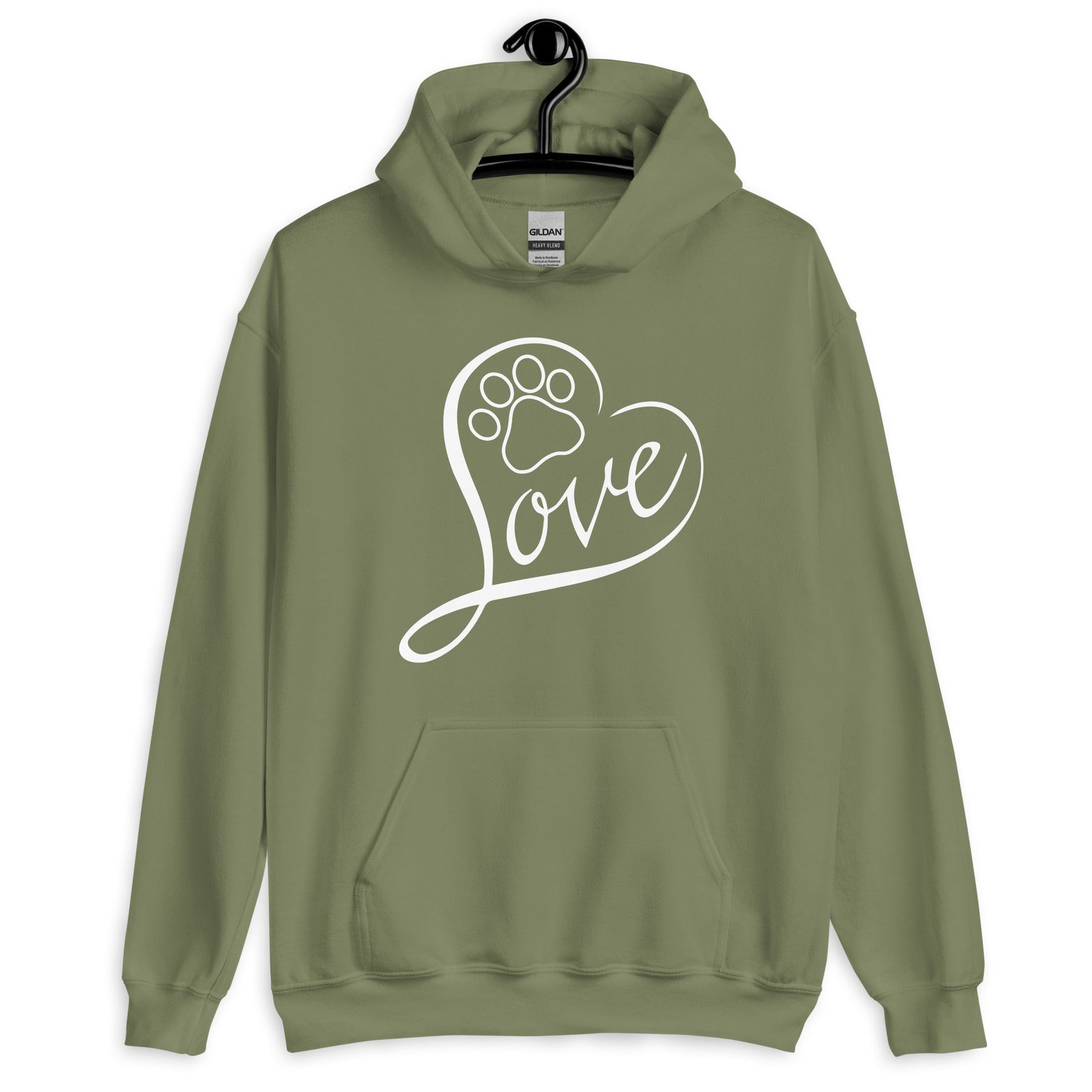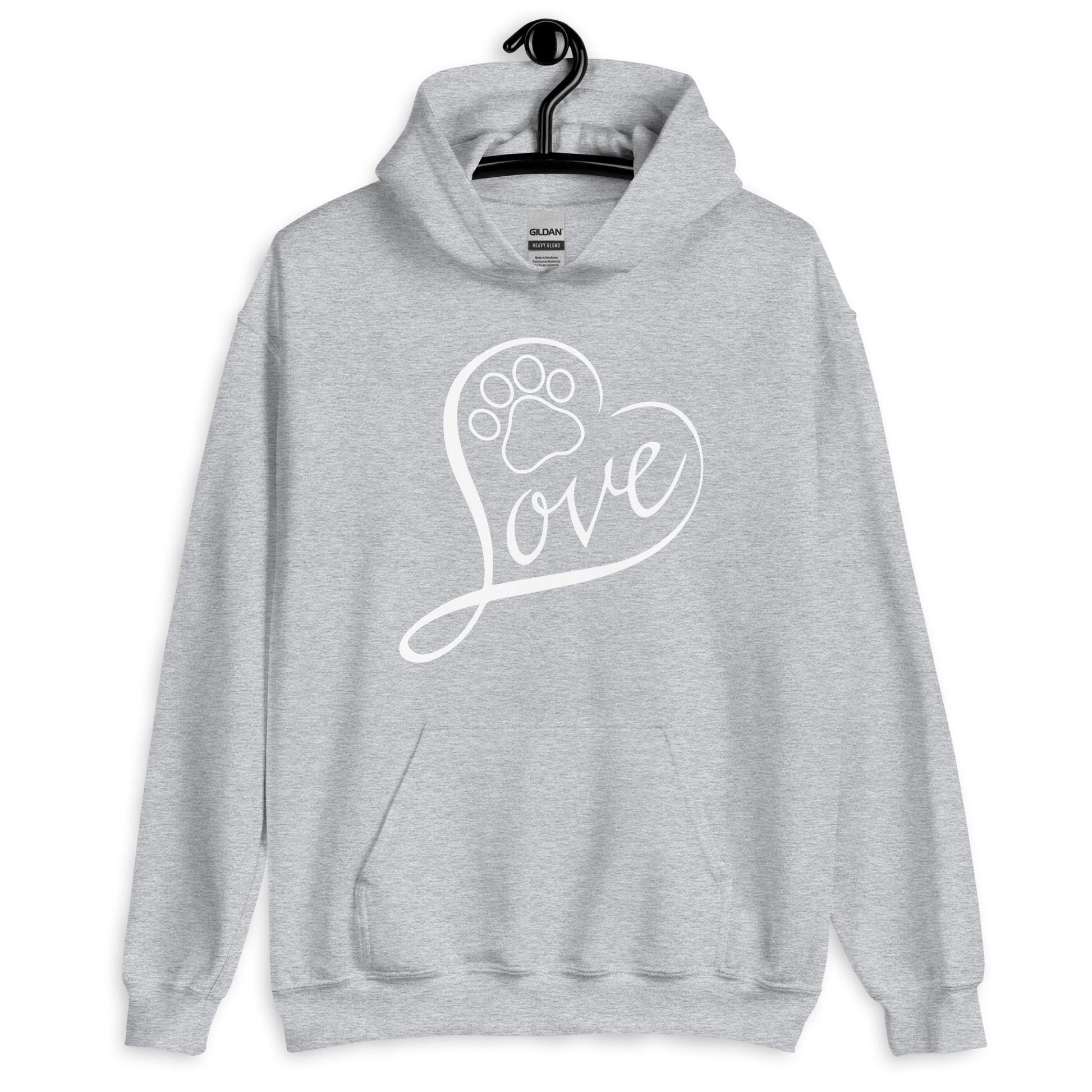Love Dog Paw Print Hoodies are printed in USA